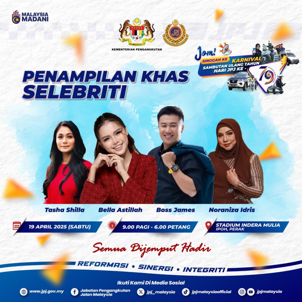 Come join the Carnival in conjunction with the 79th JPJ Anniversary at Stadium Indera Mulia, Ipoh, Perak on 18 & 19 April 2025 from 9:00 AM to 6:00 PM. Exciting activities await you❗️✅ Mobile Counter Services✅ Sale of Local SME Products✅ Electric Vehicle Exhibition✅ Agency Exhibition Booths✅ Helmet Exchange Program (19 April)✅ Live Band Show✅ […]